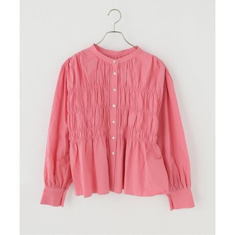 フロントに贅沢にあしらわれたシャーリングが目を引く主役級ブラウス。