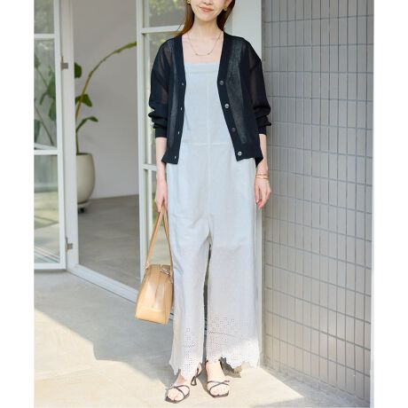 ・繊細なエンブロイダリーレースが目を惹くサロペット。