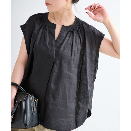 《予約》手洗い可 / フレンチリネンスリーブレスブラウス