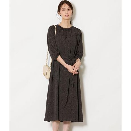 上品な柄行きで、日常からセレモニーまで頼れるきちんとワンピース。甘さを抑えたクラシカルなドットプリントで、通勤からきちんとしたお出かけ・セレモニーシーンまで幅広く対応します。また、落ち感のある素材と計算されたギャザーが、体のラインを拾いにくく、自然な華やかさを演出します。ジャケットを羽織ればきちんと感が高まり、ワンピース一枚でも品よくまとまる、大人のためのプリントワンピースです。シックで洗練された雰囲気のブラック、落ち着きを感じさせるネイビーの2色展開。