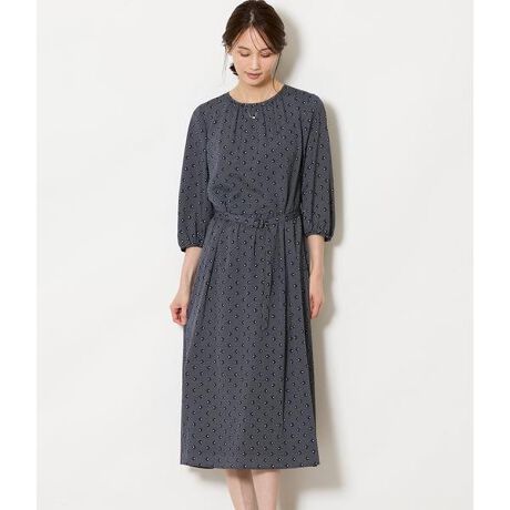 上品な柄行きで、日常からセレモニーまで頼れるきちんとワンピース。甘さを抑えたクラシカルなドットプリントで、通勤からきちんとしたお出かけ・セレモニーシーンまで幅広く対応します。また、落ち感のある素材と計算されたギャザーが、体のラインを拾いにくく、自然な華やかさを演出します。ジャケットを羽織ればきちんと感が高まり、ワンピース一枚でも品よくまとまる、大人のためのプリントワンピースです。シックで洗練された雰囲気のブラック、落ち着きを感じさせるネイビーの2色展開。