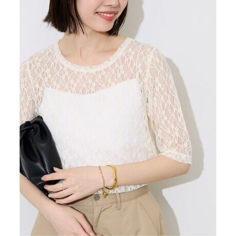 ・やわらかな着心地と女性らしさを引き立てる、ストレッチレースカットソー。