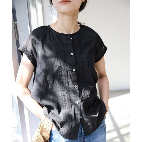 《予約》ドットジャガードノースリーブブラウス