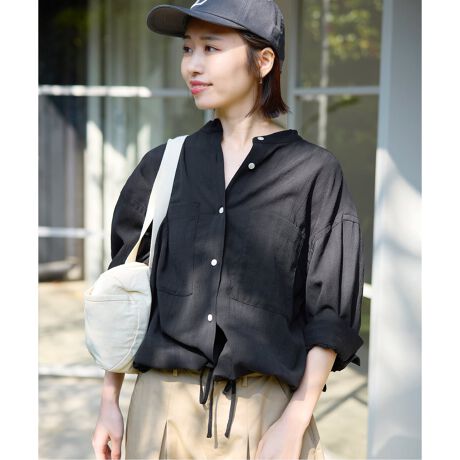 長い時期着回しの効くような透け感のある素材を使用。