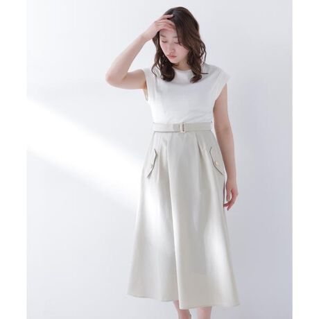 一枚でコーディネートが完成し、キレイめにもカジュアルにも着回せるドッキングワンピース。トップスは肩をほどよく覆うフレンチスリーブで腕まわりをすっきり見せ、スカートはトレンチ風ポケットと金色ボタンがアクセント。共地ベルトでウエストマークすると、メリハリのあるシルエットが叶います。<素材>整った表面感のカットソーとハリ感のある綿タッチ合繊素材を使用。<詳細>仕様・後ろファスナー裏地・なし透け感・なし / 光沢・なし / 伸縮性・あり生地の厚さ・普通※モデルの着用画像の場合、光の当たり具合により、実際の色味と異なって見えることがございます。色味は、商品単体の画像をご参照ください。