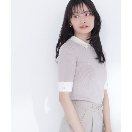 襟付きリブベーシックニット半袖