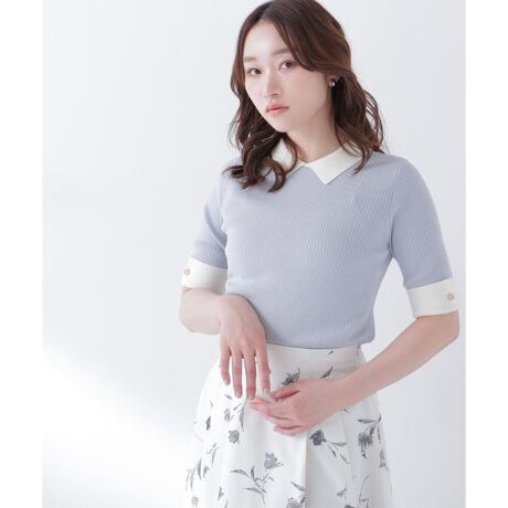 きちんと感のある襟付きデザインが上品な半袖リブニット。程よく体に沿うリブ編みで上品なシルエットを演出します。カフスの釦がさりげないアクセント。ベーシックなシルエットなのでボトムスを選ばずに着回せます。<素材>さらりとしたタッチのニット素材で、やわらかい肌あたりです。伸縮性があり程よくフィットします。<詳細>仕様・後ろボタン裏地・なし透け感・なし / 光沢・なし / 伸縮性・あり生地の厚さ・普通※モデルの着用画像の場合、光の当たり具合により、実際の色味と異なって見えることがございます。色味は、商品単体の画像をご参照ください。