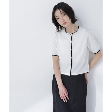 半袖カーディガンとリブ編みノースリーブニットのアンサンブル。重ねてももたつかず、スッキリとしたシルエットを演出します。カーディガンのゴールドカラー釦が上品な華やかさをプラス。セットでも単品でも着回せ、幅広いコーディネートに活躍します。<素材>清涼感のある素材を使用しています。<詳細>仕様・前ボタン裏地・なし透け感・なし / 光沢・なし / 伸縮性・あり生地の厚さ・普通※モデルの着用画像の場合、光の当たり具合により、実際の色味と異なって見えることがございます。色味は、商品単体の画像をご参照ください。
