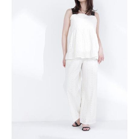 パッチワーク風に柄を組み合わせた表情豊かなレース素材のストレートパンツ。ウエストゴム仕様でリラックス感があり、内側の紐でサイズ調整も可能です。ストレートシルエットが自然に体型をカバーし、軽やかで涼しげな印象に。一枚でも着映えする、夏らしい存在感のあるアイテムです。同素材のキャミソールとのセットアップもおすすめです。<素材>ナチュラルで軽いコットンレース素材を使用しています。<詳細>仕様・開閉なし裏地・あり透け感・なし / 光沢・なし / 伸縮性・なし生地の厚さ・普通<シリーズ>■キャミソール[品番:0176110450] ※モデルの着用画像の場合、光の当たり具合により、実際の色味と異なって見えることがございます。色味は、商品単体の画像をご参照ください。