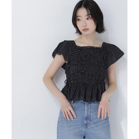 昨年人気だったブラウスから新色ドット柄が登場!身頃のシャーリングとサイドレースアップを組み合わせたフリルブラウス。フィット感がありながらシャーリング仕様で着心地が良いです。コンパクトシルエットで、ボトムスと合わせやすいデザイン。ドットプリント柄のみ裏地つきです。<素材>無地は華奢な楊柳素材と、ドットプリント柄のシアー素材を使用しています。<詳細>仕様・開閉なし裏地・ドットプリント柄のみあり透け感・ややあり / 光沢・なし / 伸縮性・なし生地の厚さ・薄手 ※モデルの着用画像の場合、光の当たり具合により、実際の色味と異なって見えることがございます。色味は、商品単体の画像をご参照ください。