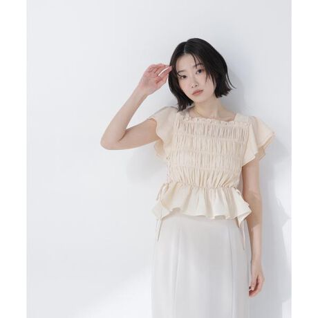 昨年人気だったブラウスから新色ドット柄が登場!身頃のシャーリングとサイドレースアップを組み合わせたフリルブラウス。フィット感がありながらシャーリング仕様で着心地が良いです。コンパクトシルエットで、ボトムスと合わせやすいデザイン。ドットプリント柄のみ裏地つきです。<素材>無地は華奢な楊柳素材と、ドットプリント柄のシアー素材を使用しています。<詳細>仕様・開閉なし裏地・ドットプリント柄のみあり透け感・ややあり / 光沢・なし / 伸縮性・なし生地の厚さ・薄手 ※モデルの着用画像の場合、光の当たり具合により、実際の色味と異なって見えることがございます。色味は、商品単体の画像をご参照ください。