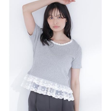 レースドッキングフリルカットソー