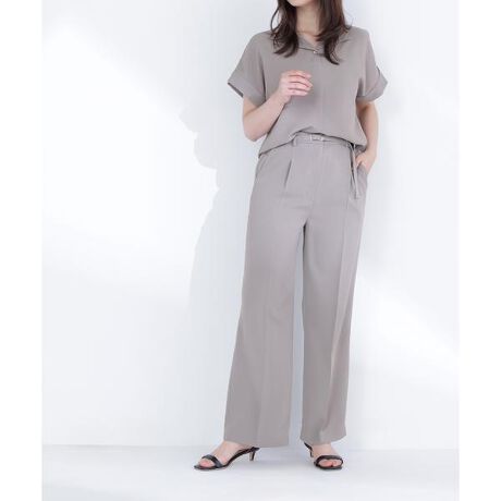 程よいゆとりと落ち感のあるタック入りワイドパンツ。共地ベルトでウエストをすっきりマークし、ゴールドカラーのバックルがさりげないアクセントになっています。ゴールドカラーバックルと、同素材のトップスの金色ボタンをリンクしたデザインで、統一感のあるセットアップスタイルも叶います。<素材>しゃりみのあるとろみ素材を使用しています。<詳細>仕様・前ファスナー裏地・オフべージュのみあり透け感・なし / 光沢・なし / 伸縮性・なし生地の厚さ・普通<シリーズ>■ブラウス[品番:0176110403] ※モデルの着用画像の場合、光の当たり具合により、実際の色味と異なって見えることがございます。色味は、商品単体の画像をご参照ください。