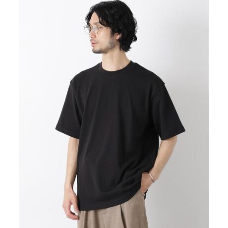 ヘリンボーン柄がさりげない立体感と奥行きのある表情を演出する、半袖Tシャツ。組織変化により、盛夏に向けてさらりとした肌触りが特徴の素材を使用。同素材のカーディガンとアンサンブルで着用いただける、上品な大人スタイルに活躍する一着です。