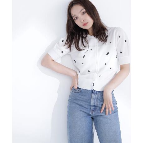 手作業でビーズをあしらった華やかなニットカーディガン。しゃりっと軽やかな風合いで存在感があり、コーディネートを引き立てる特別感のある一枚です。<素材>しゃりっとした風合いのニット素材を使用。軽やかで程よくハリがあります。<詳細>仕様・前ボタン裏地・なし透け感・なし / 光沢・なし / 伸縮性・あり生地の厚さ・普通 ※モデルの着用画像の場合、光の当たり具合により、実際の色味と異なって見えることがございます。色味は、商品単体の画像をご参照ください。