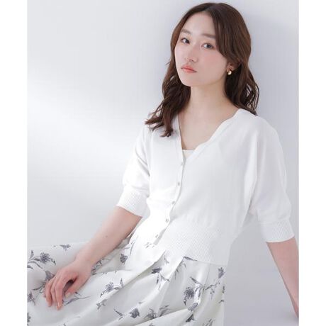 軽やかに羽織れるショート丈でスタイルアップを叶えるカーディガン。ワンピースとも相性が良く、ウエスト位置を高く見せながら女性らしいシルエットを演出します。上品にきらめくゴールドカラー釦でさりげない華やかさをプラス。さっと羽織るだけでコーディネートが決まる、キレイめスタイルにおすすめの一枚です。<素材>UVカット、マシンウォッシャブル、接触冷感やわらかな風合いのレーヨンナイロン素材を使用しています。<詳細>仕様・前ボタン裏地・なし透け感・なし / 光沢・なし / 伸縮性・あり生地の厚さ・普通※モデルの着用画像の場合、光の当たり具合により、実際の色味と異なって見えることがございます。色味は、商品単体の画像をご参照ください。