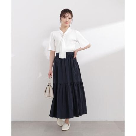 これからの季節にぴったりなタフタ素材のギャザースカート。程よいボリューム感で、デイリーに取り入やすいデザインです。タフタでは珍しいニュアンスカラー展開も魅力。ニットと合わせたキレイめスタイルはもちろん、Tシャツと合わせたフェミニンカジュアルとも相性抜群です。