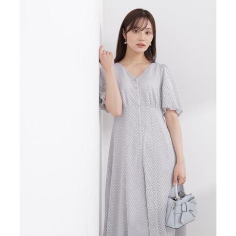 爽やかなアイレットレースを使用したレディライクなワンピース。ふわっと広がるボリューム袖と、程よいフィット&フレアシルエットがスタイルアップを叶えてくれます。Vネックでデコルテをキレイに演出。ベーシックなカラー展開で、大人フェミニンなスタイルを楽しめます。