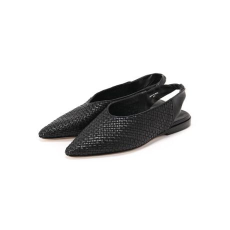 レザーテープを編み込んだアッパーにツイストしたバックストラップのフラットパンプスです。