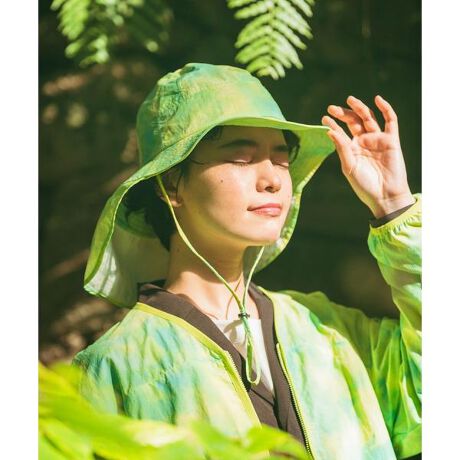 同素材同色のナイロンタッサーの洋服アイテムと合わせたコーディネートもおすすめ。ネック紐もワンタッチで取り外しができます。スベリ部分でサイズ調整も可能です。サンシェード部分にEKALのピスネームを施しているのもポイント。紫外線対策としてはもちろんコーディネートのポイントとして活躍します。