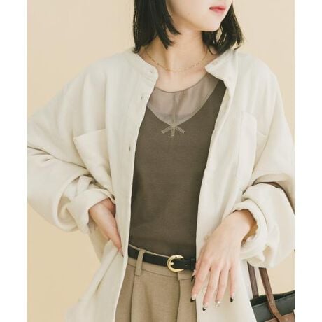 身頃は柔らかなカットソー素材、裾には程よいハリのある布帛素材を組み合わせた切り替えデザインのタンクトップ。異素材のコントラストが、トップスの裾やレイヤードから覗いたときに自然と奥行きを生み、シンプルなコーディネートを洗練された印象に導きます。前後ともに深めに開いたVネックは、ベストやニット、シャツのインナーとしても主張しすぎず、首元をすっきり美しく演出。シーズンレスに活躍する優秀インナーです。