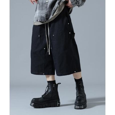 無骨なワークディテールを落とし込んだ存在感のあるW-KNEE SHORTS。