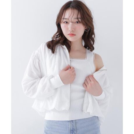シアーカットソー素材を使用したエアリーなギャザーブルゾン。身頃と袖にギャザーを施し、裾の裏側はチュールで吊った軽やかなバルーンシルエットになっています。袖口はリブ仕様でラクな着心地。メタルジップがアクセントになり、汗ばむ時期にはタンクトップの上にさっと羽織れる軽アウターとしても活躍します。<素材>軽やかで程よく透け感のあるシアーカットソー素材を使用。裾は裏地のチュールで吊っています。<詳細>仕様・前ファスナー裏地・あり透け感・あり / 光沢・なし / 伸縮性・あり生地の厚さ・薄手※モデルの着用画像の場合、光の当たり具合により、実際の色味と異なって見えることがございます。色味は、商品単体の画像をご参照ください。
