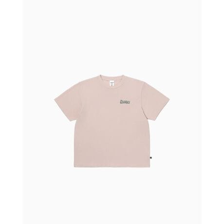 吸汗速乾、UVカット機能のあるコットン 70 ポリエステル 30の生地を使用。1980年代のフルーツの缶詰から連想されたグラフィックを使用。かすれ加工を施しヴィンテージライクに仕上げたグラフィックTEE。