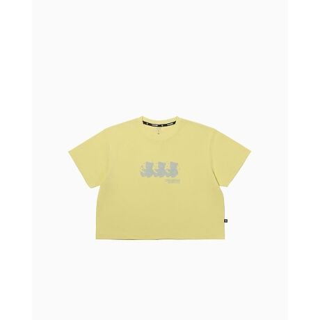 [型番:87312971]吸汗速乾、UVカット機能のあるポリエステル100の生地を使用。ヴィンテージ風クマをグラフィックに落とし込んだクロップド丈グラフィックTEE。【42300521】