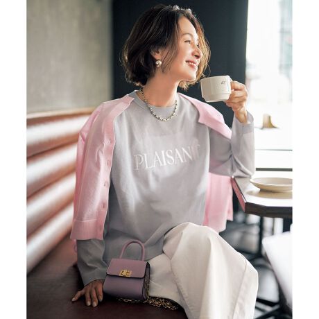 ■デザインリラックス感のある、程よくゆったりとしたサイズ感のクルーネックプルオーバー。前後差のあるヘムラインに脇スリットで、裾に動きが生じ軽やかな印象に仕上げます。グレー(103)とブラウン(135)にはロゴに刺繍が施され、カジュアルながら大人っぽい雰囲気をプラスします。ロゴ意味:楽しいね!