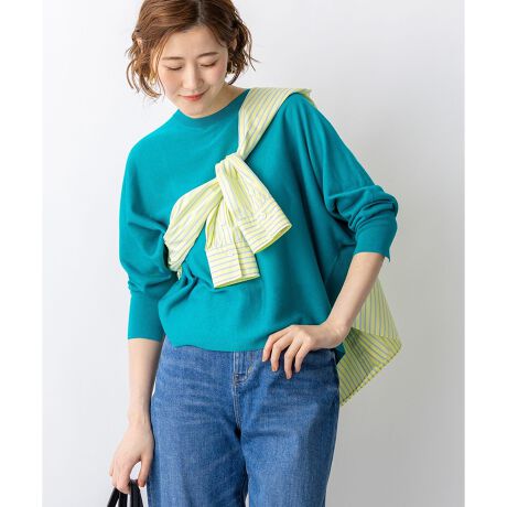 天竺編みで仕立てた7分袖のクルーネックドルマンプルオーバーです。身体のラインを拾わないゆったりとした女性らしいシルエットで、リラックス感がありつつも洗練された印象を叶えます。後ろ身頃にはボタンをあしらい、全て閉じてすっきりと着こなすのはもちろん、裾側のボタンを開けてインナーやシャツを見せるレイヤードスタイルもおすすめ。袖口にはスリットを施し、手元に抜け感をプラスしました。きれいめなパンツやスカートと合わせればオフィスシーンに、デニムと合わせれば大人の休日スタイルにと、オンオフ問わず活躍します。カラーは、着回しやすいアイボリー(#003)、やわらかな雰囲気のベージュ(#033)、温かみのあるキャメル(#034)、シックなダークブラウン(#035)、コーディネートのアクセントになるピーコック(#060)、鮮やかなブルー(#070)の豊富な6色展開です。