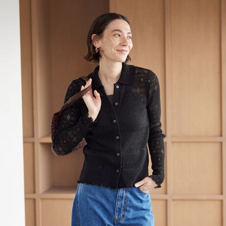 ほどよい甘さと透け感が好バランス。羽織としても様になる旬顔レースシャツ。