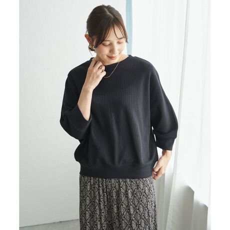 ゆとりのあるドルマンシルエットが自然に体のラインを包み込み、気負わず着られる一枚です。