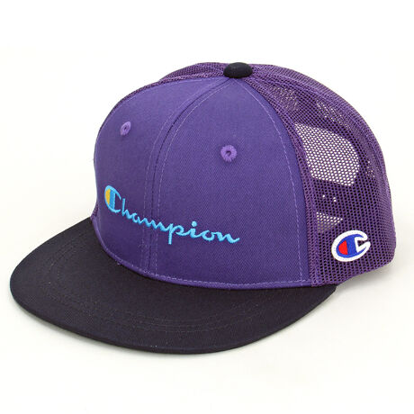 [型番:141-0085]チャンピオン キッズストレスストレートメッシュキャップ チャンピオンならではのスポーツテイストの人気アイテム。バックベルトのアジャスターでサイズ調整が可能です。フラットなツバがストリートなファッションにマッチします。