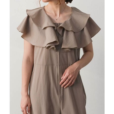アクティブなシーンでも安心して着用できる機能性に加え、胸元から肩にかけてあしらわれたフリルが女性らしい華やかさを演出します。