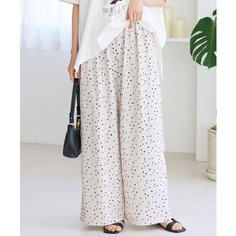 小さな星柄を全体に散りばめた、大人可愛いワイドパンツ。