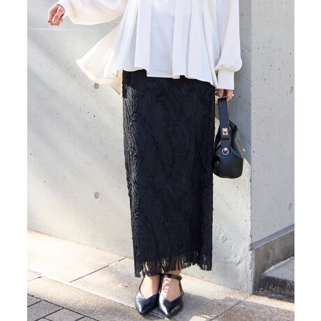立体的なチュールレースが目を惹くナロースカート。