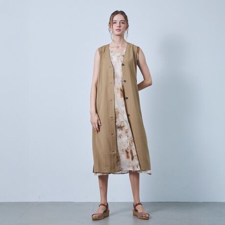 モデル着用コーディネート:761206 麻混ロングジレ 71番色
