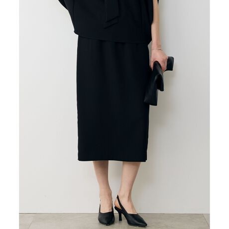 ■デザインウエストがゴム仕様で穿き心地抜群のナロースカートです。ウエスト内側のドロスト仕様でサイズ調整が可能なのも嬉しいポイント。ウエストから入ったギャザーにより、体のラインを拾いにくく、体型カバーも叶います。単品はもちろん、同シリーズのブラウスやロングジレとセットアップでの着用で、きちんと感をプラスした着こなしもおすすめです。