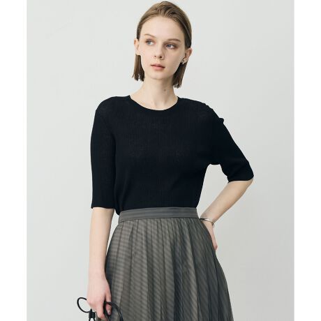 ■デザイン程よい透け感が上品な印象を与える、クルーネックのリブプルオーバーです。様々なスタイルに合わせやすいようベーシックなデザインに仕上げました。ワイドパンツやスカートなど幅広いボトムと好相性で、きれいめからカジュアルまで着回しが叶います。ジャケットやカーディガンのインナーとしても重宝するため、オンオフ問わずデイリーに活躍する一枚です。