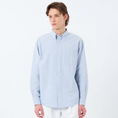 シャンブレー/ストライプ リラックスボタンダウンシャツ