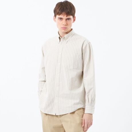 抜け感のあるオーバーサイズボタンダウンシャツ。ゆったりめのボディ感と、小ぶりな襟の絶妙なバランスが特長です。羽織りとしても着用できる汎用性の高いシャツに仕上げました。