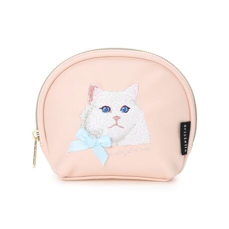 [型番:611160]フロントのネコ刺しゅうが目を惹くデザインのポーチ。ラウンドファスナー式でたっぷりと開くことができ、中身が見やすい仕様になっています。コンパクトでありながら内ポケットが付属しているのも嬉しいポイント。ご自分用やネコ好きの方へのプレゼントにも喜ばれるアイテムです。