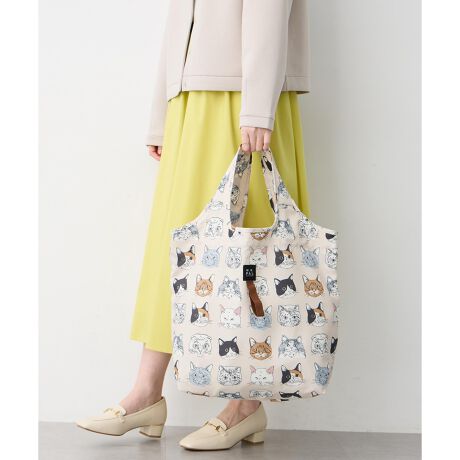 [型番:611121]ネコの総柄デザインがキュートで愛らしいマルシェバッグ。温度をキープするアルミ裏地を採用し、保冷と保温どちらも対応してくれます。たっぷりと収納できる底マチ付きのデザインがポイント。くるくると折り畳めば、コンパクトに持ち運びできるアイテムです。