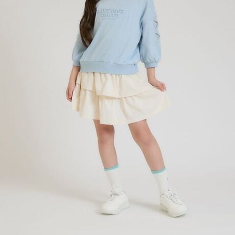 フリルを2段に重ねた、ガーリーなシルエットが可愛いポイント。