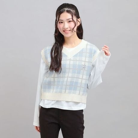 ニットベストは袖が無いので、半袖と合わせたりすれば長く着られるアイテム。