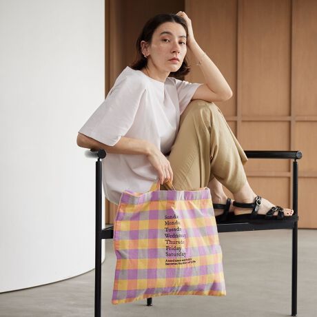 華やかなチェック柄が、デニムやスウェットなど春夏のカジュアルな装いにアクセントをプラス。