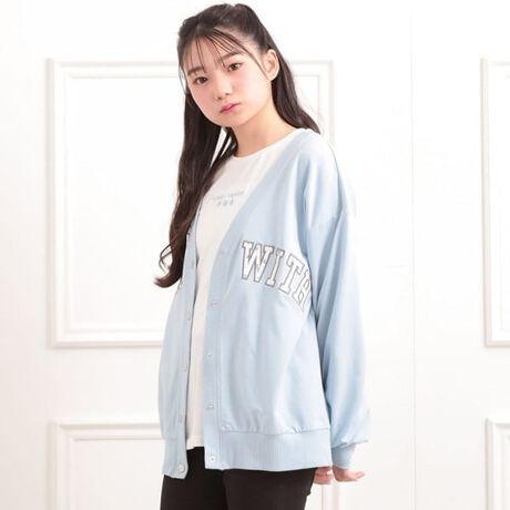 Vネックカレッジアップリケ裏毛カーディガン
