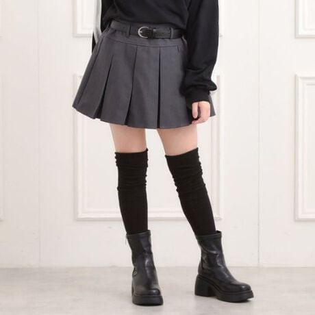 ベルト付きプリーツスカート