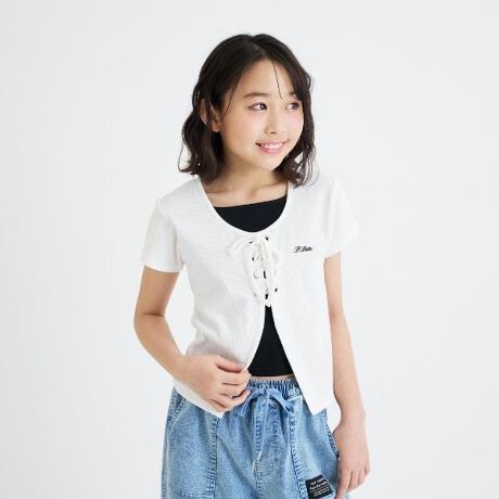 テレコレースアップ半袖トップス